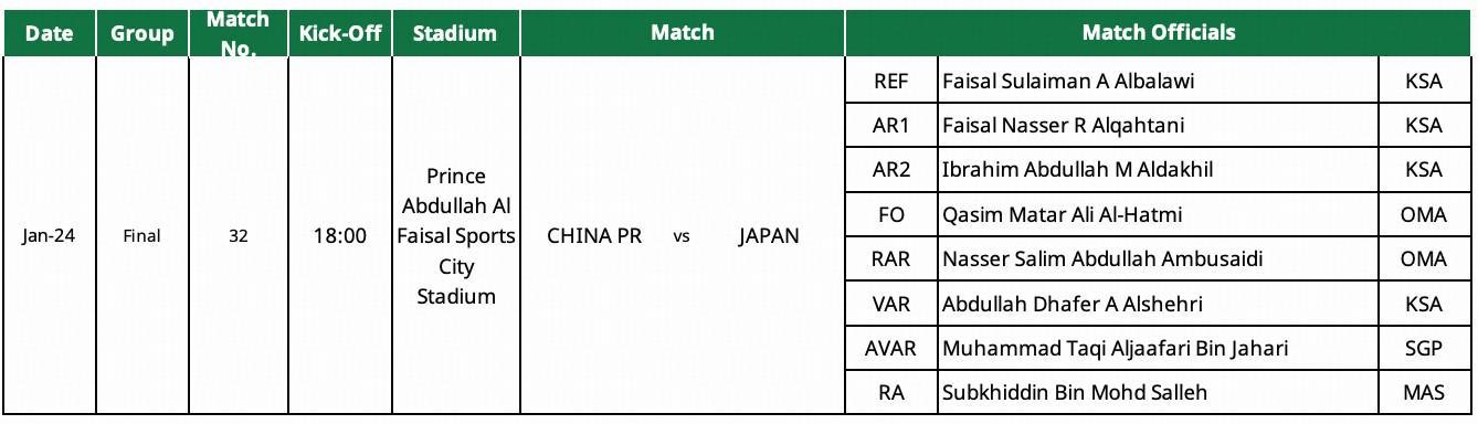 主裁判:Faisal Sulaiman A Albalawi(沙特)
